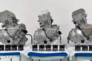 Contestualmente il costruttore ha spiegato che il motore all’estrema sinistra è la prima versione e quello a destra è l’ultimo stadio di sviluppo, sottolineando anche come i filtri dell’olio siano spesso intercambiabili anche se di marchi diversi. Lo dimostrano quelli che compaiono nella stessa foto, marcati "Yamaha", "Honda-Yamaha-Kawasaki" e "Zontes".