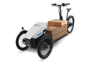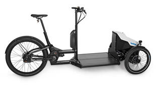 La tedesca Sortino ha realizzato un’interessante bici elettrica da lavoro a tre ruote con un sistema di sterzata basculante che promette tanta agilità. L’ampio vano di carico può essere attrezzato con griglie e box personalizzati per diverse esigenze, ad esempio con cassettiere per il trasporto degli attrezzi del mestiere. L’e-cargo è motorizzata con sistema Bosch Active o Performance CX