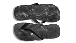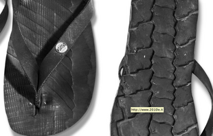 L'azienda milanese "2010" ha realizzato un modello di ciabatte prodotto con pneumatici riciclati. Ogni paio è unico e acquistandoli si fa anche del bene