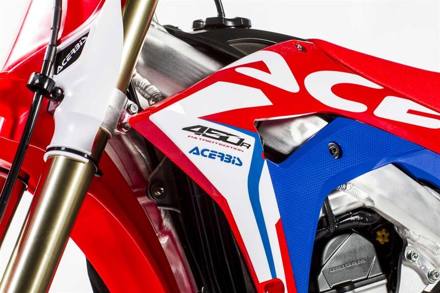 Per personalizzare la CRF450 R di Honda, Acerbis propone due nuovi kit in stile USA. Il “full” e il “plastic” kit Patriot hanno prezzi differenti, ma le parti - dal parafango alla tabella portanumero - sono acquistabili anche separatamente