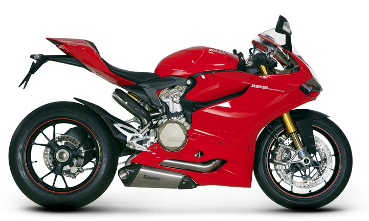 Akrapovic ha realizzato uno scarico della linea Evolution (il meglio del produttore sloveno) per la supersportiva di Borgo Panigale. Il sistema di scarico per la 1199 Panigale è realizzato completamente in titanio e pesa poco: terminale e raccordi fanno segnare sulla bilancia solo 6 kg, migliorando così il già esagerato rapporto peso/potenza della bicilindrica italiana (195 CV per 165 kg). Il particolare disegno dei raccordi è stato realizzato con saldature al TIG mentre il fondello e il manicotto copriraccordo che passa sotto la sella sono in carbonio. Il terminale sarà in vendita il prossimo anno a un prezzo ancora da definire.