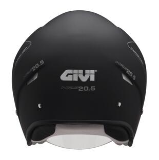 Il nuovo casco jet 20.5 della Givi è realizzato in fibra composita e pesa solo 1.150 grammi. Gli interni in materiale anallergico sono completamente estraibili e lavabili. La visiera antigraffio copre tutto il viso del pilota, il suo meccanismo di apertura è esterno alla calotta e permette la regolazione della visiera "a scatti". Il cinturino è a sgancio rapido mentre il sistema di areazione è quasi da casco integrale: davanti ci sono due prese frontali regolabili mentre dietro trovano posto due piccoli estrattori. Il 20.5 è disponibile in cinque taglie dalla XS alla XL. Le colorazioni previste sono tre, due lucide (bianco e nero) con grafiche oro e argento e una più aggressiva in nero opaco. Il 20.5 sarà disponibile da febbraio al prezzo di 127 euro.