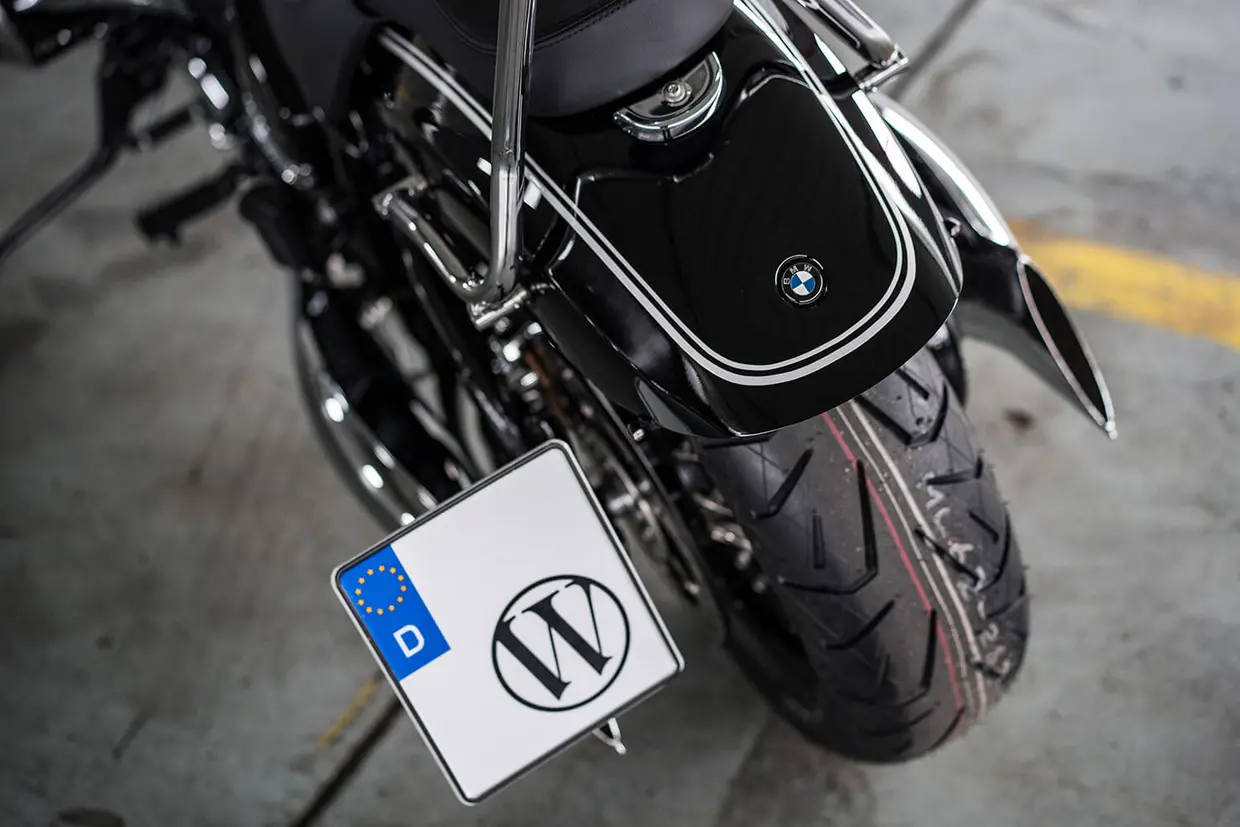 Si comincia con il portatarga laterale che permette di lasciare scoperta la maestosa ruota posteriore della R 18, conferendo al veicolo una sfumatura di originalità. È realizzato in tubo di acciaio e viene consegnato in tinta con il telaio, verniciato in polvere nera e protetto da uno strato di trasparente; si monta senza modifiche sui punti di attacco già presenti sul forcellone e permette di regolare la posizione della targa in altezza e inclinazione. Per mantenere un aspetto ordinato, i cavi dell’illuminazione della targa stessa passano all’interno dei tubi. Il portatarga, viene fornito con il set di fissaggio completo. Il LED di illuminazione può venire montato sia nella parte superiore che lateralmente. È venduto al prezzo di 306,54 euro e Wunderlich consiglia di ordinare anche gli attacchi abbinati per frecce e catarifrangente posteriore.