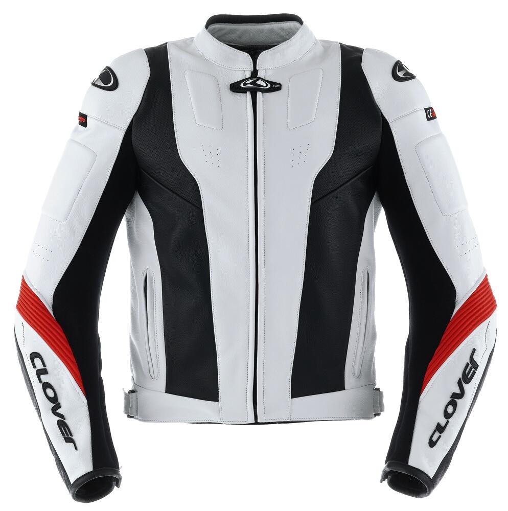 La giacca Triforce della Clover è uno dei pochi capi ad avere l'omologazione CE di livello 2. È realizzata in pelle con trattamento idrorepellente, inserti catarifrangenti e ha la cerniera per collegarla ai pantaloni. Prezzo corretto, considerando le qualità "certificate".