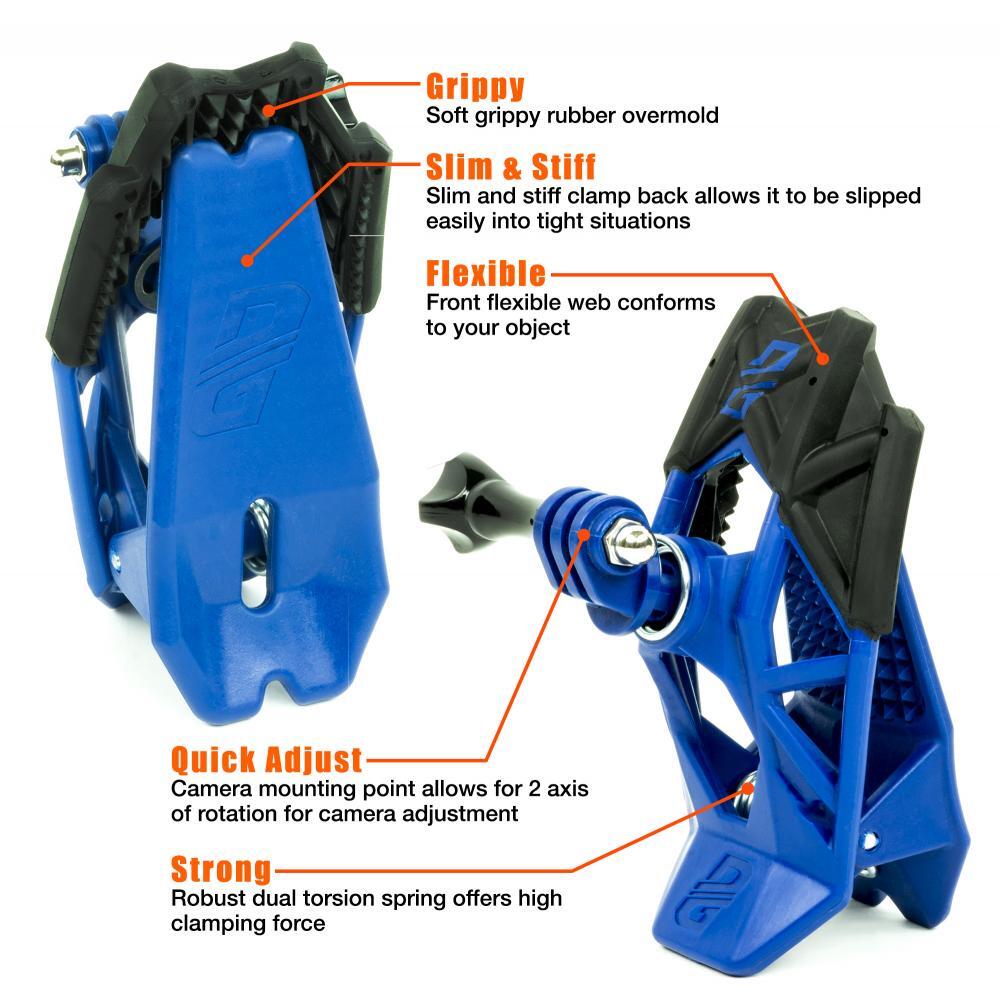 Dalle più tecnologiche e costose alle più semplici ed economiche, di action cam ce ne sono davvero per tutti i gusti. Molte vengono vendute complete di staffe e adesivi di fissaggio, adatti anche alla moto ma, va detto, non sempre comodissimi. Una soluzione ce la offre in questo caso Dango Design con la nuova pinza Gripper Mount, soluzione compatibile con la maggior parte delle action cam in commercio. La cosa bella è che può essere essere montata in modo semplice, rapido e, sopratutto, sicuro sia sulla mentoniera del casco, quindi per le riprese onboard, che direttamente sulla moto, quindi sul telaio oppure sul portapacchi. Il rivestimento in gomma zigrinata sulle ganasce assicura un’ottima presa (c’è una robusta molla a doppia torsione che fornisce una elevata forza di serraggio), nonchè la possibilità di fissaggio anche su superfici irregolari e scivolose, mettendo ovviamente al sicuro la vernice e le parti più delicate della moto. Inoltre, il supporto per la camera, regolabile, può essere inclinato a piacimento in base all’angolazione di ripresa che si preferisce adottare. Altra caratteristica è la possibilità di utilizzare la Gripper Mount anche come stabilizzatore o treppiede e, quindi, ottenere sempre riprese stabili e senza oscillazioni. Il tutto per un peso di soli 170 grammi.