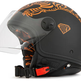 Nasce dalla collaborazione tra Helmo Milano e Iuter, brand italiano attivo nel mondo streetwear nato a Milano nel 2002, il casco demi-jet “Tibetan Tiger Rug”, impreziosito dalla grafica di Iuter: raffigura il tappeto tibetano a forma di tigre, usato nella cultura buddista per proteggere colui che è indifeso perché sta pregando. L'interno del casco è stampato con il pattern “Tiger Camo” dalle tonalità arancioni e nere, colori che caratterizzano tutta la collezione Iuter SS18 “Mirage”. Il casco presenta i loghi di Iuter ai lati e i loghi Helmo, tono su tono, sono cuciti sui guancioli laterali con predisposizione bluetooth. Il modello è dotato di visiera lunga in lexan. Oltre al casco sono inclusi nel packaging un set di sticker e un portachiavi Tiger Rug. Il primo lotto di caschi in tiratura limitata è andato subito esaurito sullo Iuter online store e nello Iuter Store Milano in corso di Porta Ticinese 48. A parte questa nuova serie speciale realizzata per Iuter, al top della gamma Helmo Milano troviamo il FuoriRotta. Creato dal designer Rodolfo Frascoli, questo casco unisce le qualità di un jet a quelle di un integrale: FuoriRotta è un jet modulabile che si chiude diventando un integrale e presenta il grande vantaggio di lasciare più libero e mobile il collo. Il sistema di aerazione "top ventilation" a due prese d’aria con ben 16 fori che sfruttano l’effetto camino, perché l’aria calda sale verso l’alto ed esce dalle prese superiori, sospinta dall’aria fresca che entra dalle prese anteriori. La calotta ha una griglia metallica per consentire l’uscita d’aria calda e l’ingresso di quella fresca, ma le apposite placchette di protezione trasparenti amovibili, impediscono all’acqua di entrare in caso di pioggia. Da chiuso, FuoriRotta è dotato di un’ampia visiera trasparente (disponibile anche fumé) con Pinlock; quando è aperto, con la visiera alzata, la mentoniera funge da frontino parasole, evitando l’effetto “vela". Il prezzo di vendita del FuoriRotta è di 159 euro.