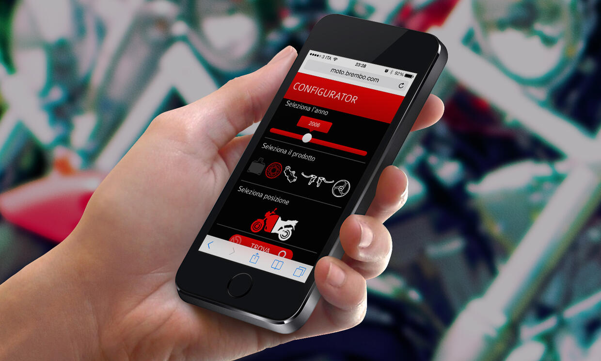 Si tratta proprio di un "configuratore dei freni della moto" lo strumento messo a punto da Brembo e disponibile online (moto.brembo.com) che offre la possibilità di valutare come migliorare il sistema frenante della propria moto scegliendo tra i prodotti di tutta la gamma Brembo e Marchesini. È sufficiente inserire nel configuratore alcune informazioni sulla propria moto (marca, cilindrata, modello e anno di prima immatricolazione) per scoprire quali prodotti sono disponibili e dove si possono acquistare, con l'indicazione del punto vendita più vicino oppure del distributore ufficiale per i clienti fuori Italia (sono oltre 60 i Paesi in cui sono distribuiti i prodotti Brembo). Il Motorcycle Brake Configurator Brembo offre informazioni su oltre 7mila modelli di moto, dalle supersportive agli scooter più comuni, passando per le touring, le custom e le enduro. Per ogni prodotto è possibile accedere a numerose informazioni, curiosità, e filmati. La scelta è notevole: sono infatti oltre 100 le proposte tra pastiglie, dischi, pinze, pompe freno e frizione, ruote offerti dal marchio, proposti in tutte le varianti per i diversi modelli di moto. I prodotti sono suddivisi in quattro categorie: Racing (per utilizzo in pista o comunque altissime prestazioni), Performance (per moto stradali con caratteristiche sportive, Premium (dischi e pastiglie Brembo compatibili con gli originali), e Genuine (pastiglie sviluppate da Brembo per il primo equipaggiamento e scelte dai più importanti costruttori moto). Il configurator, poi, propone un elenco di altri prodotti compatibili con quello ricercato. Da notare che si può accedere al Configurator Brembo con qualsiasi device (tablet, pc, smartphone): la tecnologia “responsive design” lo rende, infatti, graficamente adattabile a schermi di diverse dimensioni e risoluzioni.