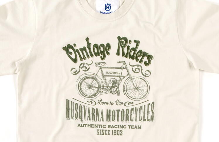 Husqvarna ha una linea di abbigliamento griffata per il tempo libero davvero ben riuscita: Vintage Riders propone magliette, felpe, top e bikini con stampe old style come la t-shirt bianca qui sopra con scritta Vintage Riders (33 euro) e il bikini in lycra bianco e marrone a 50 euro (non proprio regalato... lo vedete nella gallery)Qui sotto il video di presentazione della linea dove, oltre ai capi della collezione, fa bello sfoggio di sé anche una Husqvarna cross anni 60.