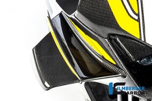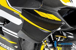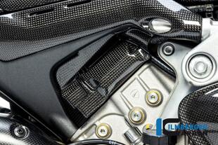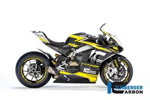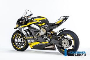 Recentemente “declinata” nella versione speciale “25° Anniversario 916” dedicata al grande Fogarty, la Panigale V4 guadagna oggi un nuovo - e preziosissimo - kit firmato Ilmberg Carbon. Dopo quello dedicato alla BMW S 1000 RR, lo specialista tedesco ha scelto infatti di dedicarsi all’italiana made in Borgo Panigale, progettando un apposito pacchetto per renderla ancora più preziosa e performante. Nel dettaglio, il kit comprende pezzi come carene laterali, alette aerodinamiche, codino, carter, copriforcellone, paracatena, parafango e copriserbatoio - e molto altro - , il tutto ovviamente in prezioso e leggerissimo carbonio. Andando a sostituire praticamente ogni componente plastica della V4, il kit garantisce infatti una significativa perdita di peso, rendendo così la super sportiva ancora più performante. Non meno importante il restyling estetico, che senza nulla togliere alle già raffinate linee disegnate in Italia, dona alla V4 un aspetto certamente ricercato. Certo, bisogna mettere in conto una spesa significativa: il kit completo costa infatti 10.000 euro che, sommati ai circa 27mila del listino Ducati, non sono certamente pochi…Tuttavia, è possibile anche acquistare ogni componente separatamente e ridurre in questo modo le spese. In questo caso, si va dai 99 euro richiesti per le parti più piccole e semplici, fino ad oltre 730 euro per la finitura del codino…