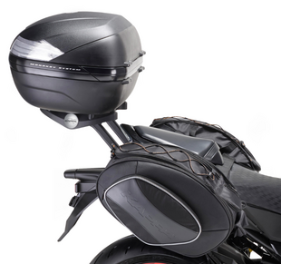 Il kit prodotto da Kappa per la Kawasaki Z 800 può essere montato e smontato in pochi minuti. È composto da un portapacchi posteriore in grado di montare ogni tipo di bauletto Monokey o Monolock (89 euro) e che fa da supporto ai telaietti delle borse morbide laterali (TE4109K, 81,50 euro). Quelle nella foto sono le RA310, che costano 139 euro, in alternativa, rinunciando al bauletto posteriore, è possibile scegliere il solo attacco per le borse laterali morbide: è il 4109KIT che costa 46,50 euro. Sul serbatoio è fissata la borsa RA309 (68,50 euro) che si aggancia con un sonoro click alla flangia fissata al tappo (sistema Tanklock, 11 euro). Infine, il cupolino in tinta fumé, con taglio superiore squadrato, sfrutta i punti di attacco presenti sul retro cruscotto: costa 86,50 euro, compreso il kit di fissaggio.Aggiungi un commento
