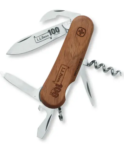 La L.L. Bean è una delle più grandi società di vendita per corrispondenza degli Stati Uniti. Per celebrare i suoi primi 100 anni di attività ha messo sul mercato un coltellino svizzero (realizzato dalla Wenger) con manico in noce e logo L.L. Bean 100 Years