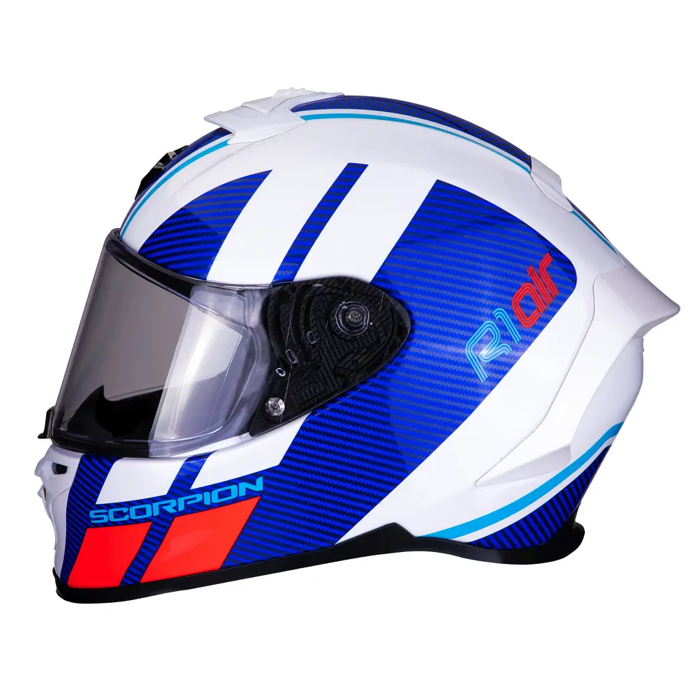 È stato sviluppato soprattutto per l’uso racing e sfoggia caratteristiche di altro livello. Ha una calotta in Ultra-TCT (un misto di fibre a 5 strati con aggiunta di Kevlar, brevetto Scorpion) e una presa d’aria superiore sagomata in galleria del vento per avere una buona portata d’aria ma anche poca rumorosità. La visiera offre una visuale verticale migliorata risetto al precedente EXO-2000 e ha un sistema di sgancio che non necessita dell’utilizzo di attrezzi, mentre gli interni hanno un rivestimento in KwikWick®III, un tessuto che, promette Scorpion, garantisce una traspirazione rapida e un grande confort. È disponibile in tre calotte di differente misura per taglie dalla XS alla XL, da segnalare la particolare sagomatura della parte bassa della calotta che, in caso di caduta, limita il rischio di provocare la rottura della clavicola. L’Exo R1 Air ha la chiusura a doppio anello, pesa solo 1.280 grammi e costa 369,90 euro in tinta unita e 399,90 con grafiche. Sarà disponibile da novembre.