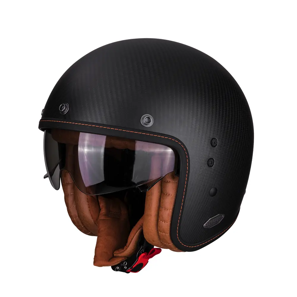 Il jettino per custom e moto retrò è ora disponibile anche con la calotta in fibra di carbonio, sempre con visiera a scomparsa. Rimangono invece gli interni in ecopelle. Costa 299,90 euro, mentre quello la versione in fibra di vetro costa 189 euro che scendono a 169 euro se si sceglie il modello in tinta unita privo di grafiche.