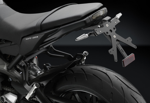 La Yamaha MT-09 è senza dubbio una della novità più apprezzate del 2013, grazie al suo look ma soprattutto grazie alle doti dinamiche che si sposano perfettamente con i gusti dei motociclisti europei. Nonostante un mercato in forte crisi, questa naked di nuova concezione, grazie anche al prezzo contenuto, promette di essere uno dei bestseller di vendita del 2014 e, per questo motivo, l'azienda di accessori aftermarket Rizoma ha deciso di dedicarle un intero equipaggiamento. Secondo lo stile Rizoma, la MT-09 è stata trasformata con dettagli sobri ma ricercati, che non snaturano l'estetica della tre cilindri giapponese ma al contrario ne esalta i tratti distintivi. Tra gli accessori più interessanti troviamo un cupolino in alluminio satinato subito sopra il faro anteriore (prezzo 289 euro) o uno in policarbonato più economico ( 149 euro). Subito dietro troviamo un manubrio a doppia sezione, da scegliere in un'ampia gamma di colori (89 euro). Al posteriore troviamo un faro a led dalle dimensioni più compatte (99 euro) accoppiato a un portatarga più piccolo in ergal (129 euro) e alle pedane passeggero compatte (199 euro). Tutto ciò alleggerisce ulteriormente il già sottile codone, mentre per quanto riguarda specchi, frecce, tamponi paratelaio, cablaggi, tappo serbatoio, pedane e supporti cavalletto c'è l'imbarazzo della scelta, potendo adattare tutte le proposte del catalogo Rizoma. Per completare l’opera è possibile dotare l’MT-09 con grafiche ufficiali Rizoma (69 euro). Con una verniciatura scura (in gamma MT-09 ce n'è una nera opaca e una grigia opaca con cerchi blu) questi accessori risaltano ancora di più le forme e la cura del design elaborata dagli ingegneri Yamaha.