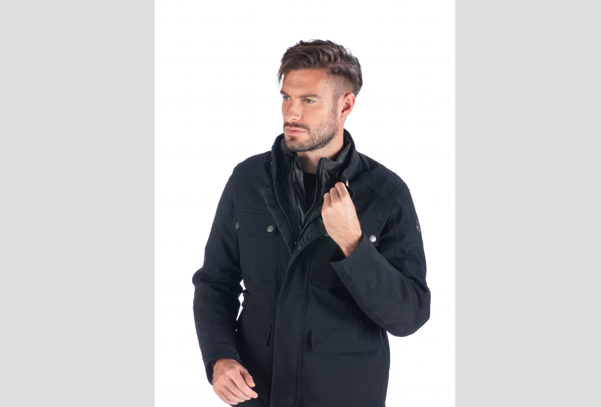 Nonostante l’aspetto assolutamente urbano è un capo tecnico a due strati, con un elevato grado di impermeabilità: 10.000 mm di colonna d’acqua. Il tessuto esterno è NY-Cotton Touch, ed è laminato con la membrana Aqvadry impiegando un processo di accoppiamento termo-nastrato. Non è solo questione di pioggia però: la giacca è pensata anche per contrastare le temperature invernali ed è dotata di un’imbottitura interna removibile in Thermotouch, così da poter essere usata fino a primavera inoltrata.