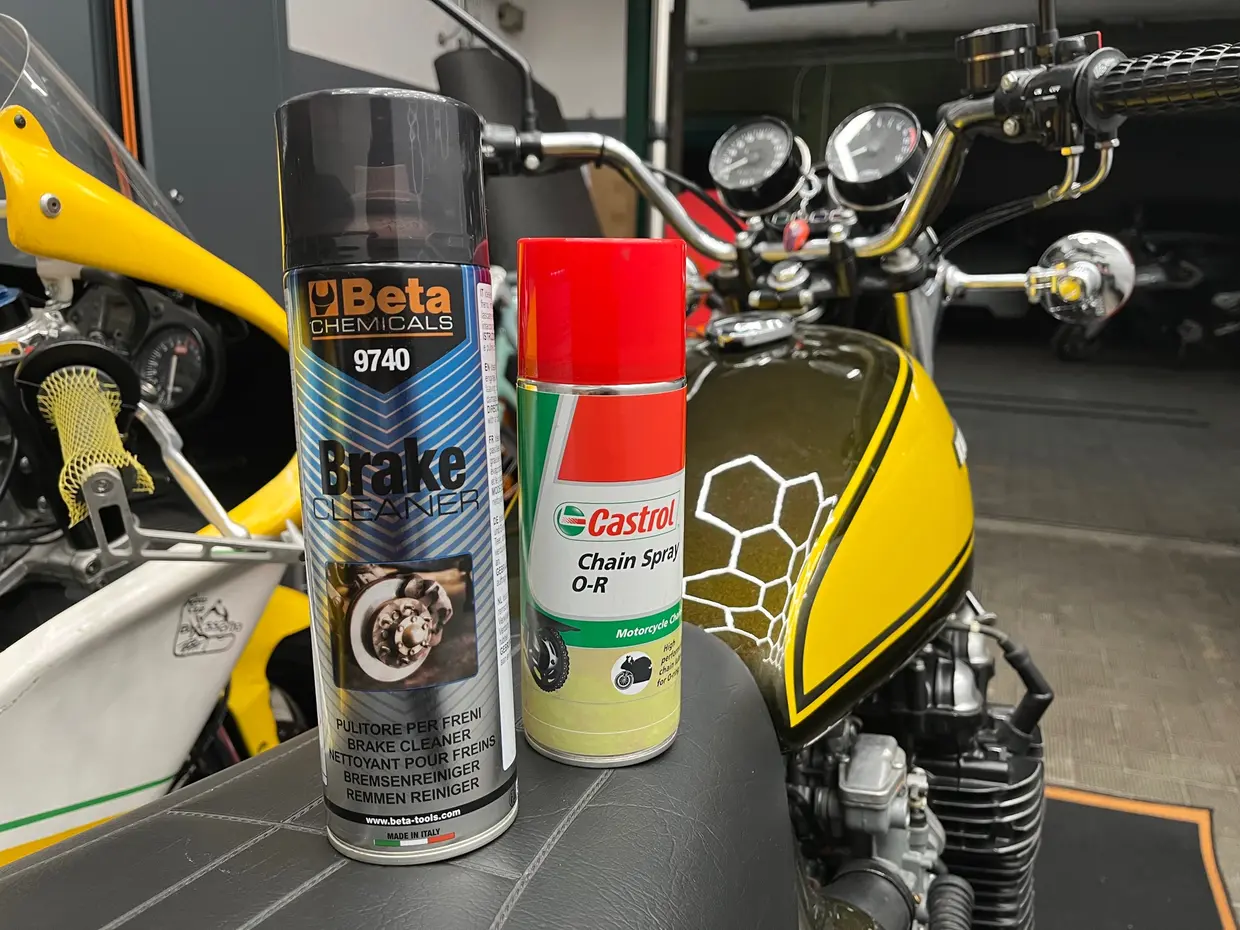 Grasso, brake cleaner e lubrificante catena: questi tre prodotti sono indispensabili per pulire e mantenere la maggior parte dei componenti della vostra moto. Il grasso, ad esempio, si usa su perni e componenti come l'acceleratore; il brake cleaner è molto efficace anche con lo sporco incrostato; la catena andre lubrificata con frequenza per evitare spiacevoli imprevisti durante i momenti di libertà con la vostra moto, quindi anche questo prodotto non può mancarvi.