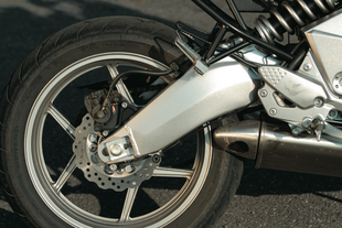 Bello il forcellone in alluminio "a banana" che lascia spazio allo scarico sotto al motore (un'altra soluzione molto moderna per i tempi)