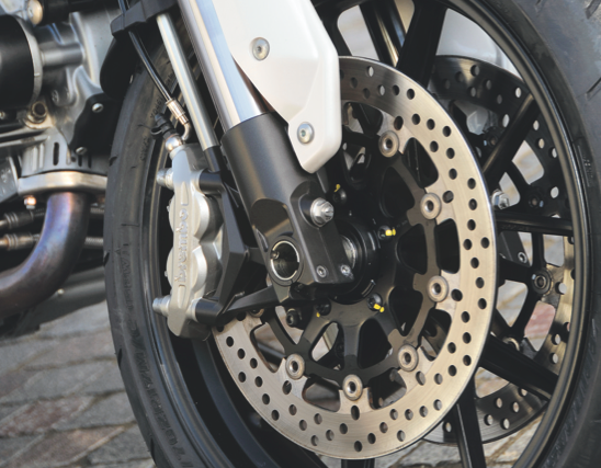 Impianto frenante Brembo a doppio disco anteriore con pinze radiali