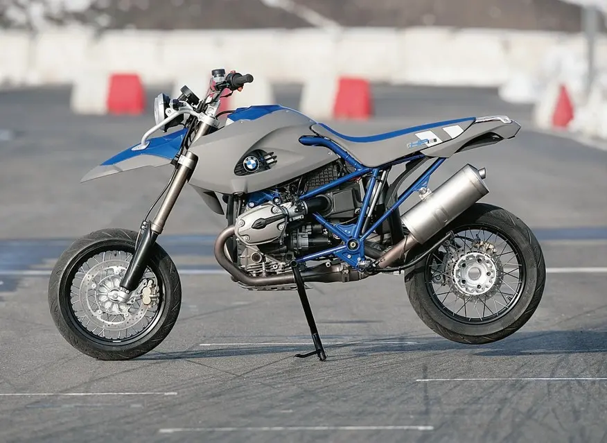 Per chi desiderava divertirsi tra le curve, BMW offriva un kit ufficiale, che trasformava la HP2 in una motard pura. Il pacchetto comprendeva ruote a raggi da 17 pollici (anteriore 3,5×17, posteriore 4,0×17) con pneumatici stradali Continental Road Attack, disco anteriore maggiorato da 320 mm, protezioni forcella dedicate e supporti pinza freno riposizionati. La conversione era rapida: bastava sostituire le ruote e i paraforcelle, mantenendo invariati gli attacchi principali. Con il kit montato, la HP2 cambiava volto, diventando una “motardona” senza compromessi, capace di divertire anche su asfalto grazie al peso contenuto e alla risposta immediata del boxer. Oggi, gli esemplari dotati di questo kit sono tra i più ricercati sul mercato dell’usato e possono aumentare sensibilmente di valore se originali e ben conservati.