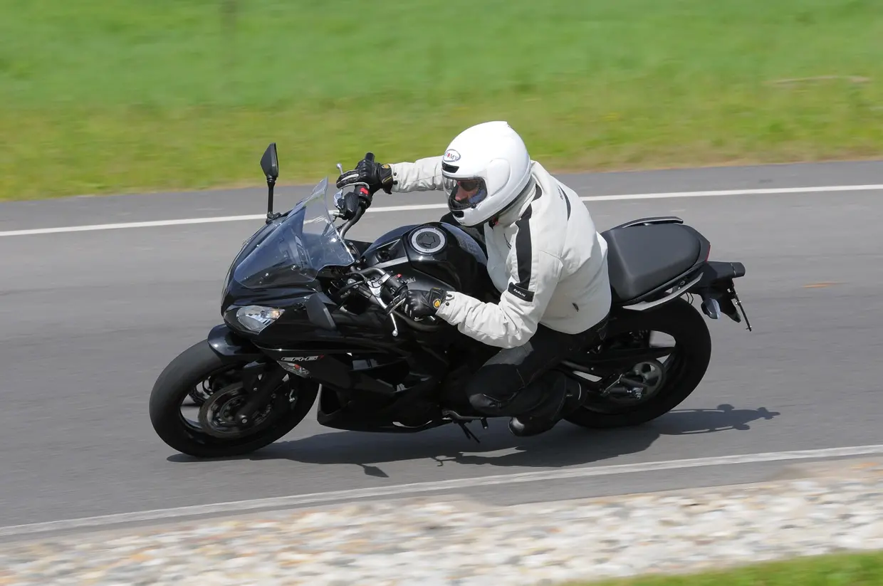 La piccola Kawasaki è una vera sport-tourer e qui si dimostra a suo agio. Il parabrezza è regolabile su tre posizioni, i consumi sono contenuti e la protezione dall’aria è buona; solo le gambe risultano un po’ scoperte, ma nulla di grave. Unica nota stonata, le vibrazioni ai regimi medio-alti si sentono parecchio, persino sulle pedane e sulla seduta del passeggero. Buona invece la stabilità in velocità, anche quando si viaggia in due con i bagagli.