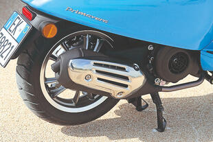 Proprio l'impianto frenante di cui parlavamo non convince del tutto: su un modello di lusso come la Primavera il tamburo posteriore è una scelta un po' troppo economica (e oltretutto limita l'ABS solo alla ruota anteriore). Le pedane del passeggero integrate nella scocca sono scomode e posizionate troppo in avanti. Il vano sottosella è piccolo: ci sta al massimo un casco jet.