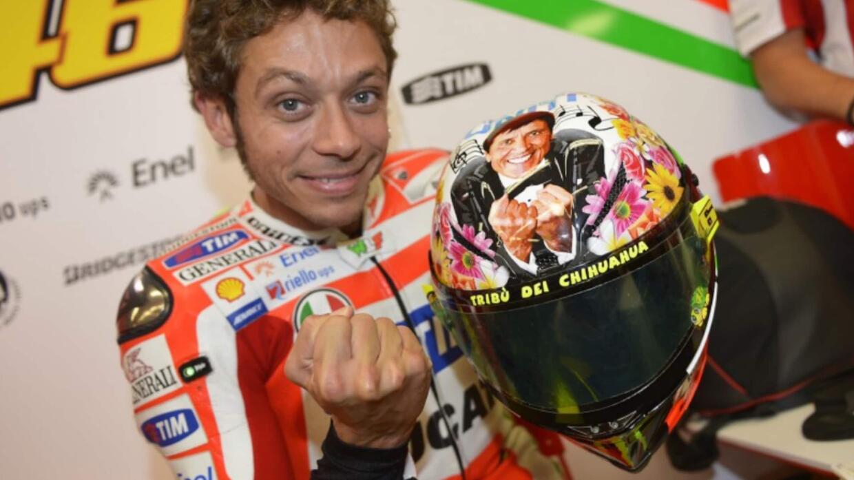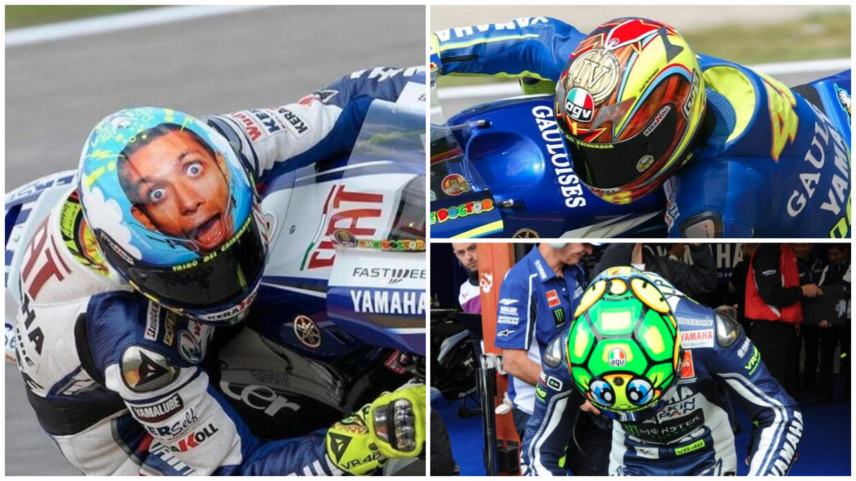 In vent'anni di gran premio d'Italia, Rossi ha corso con caschi diventati mitici: da Milo Manara a Mugiallo, hanno riempito i weekend di gara di ironia e slanci di affetto per i tifosi