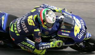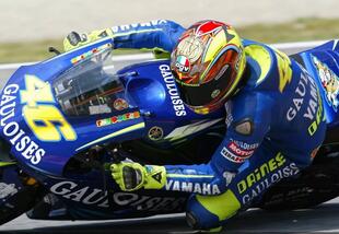 L'anno successivo Rossi è passato in Yamaha. L'inizio è spumeggiante, con la mirabolante vittoria di Welkom su Max Biaggi, ma nelle due gare successive arrivano due quarti posti, con Gibernau vittorioso in Spagna e Francia. Valentino la prende bene e fa disegnare una medaglia di legno sul suo casco (qui sopra). La scelta porta bene e Valentino vince per la terza volta di fila al Mugello.