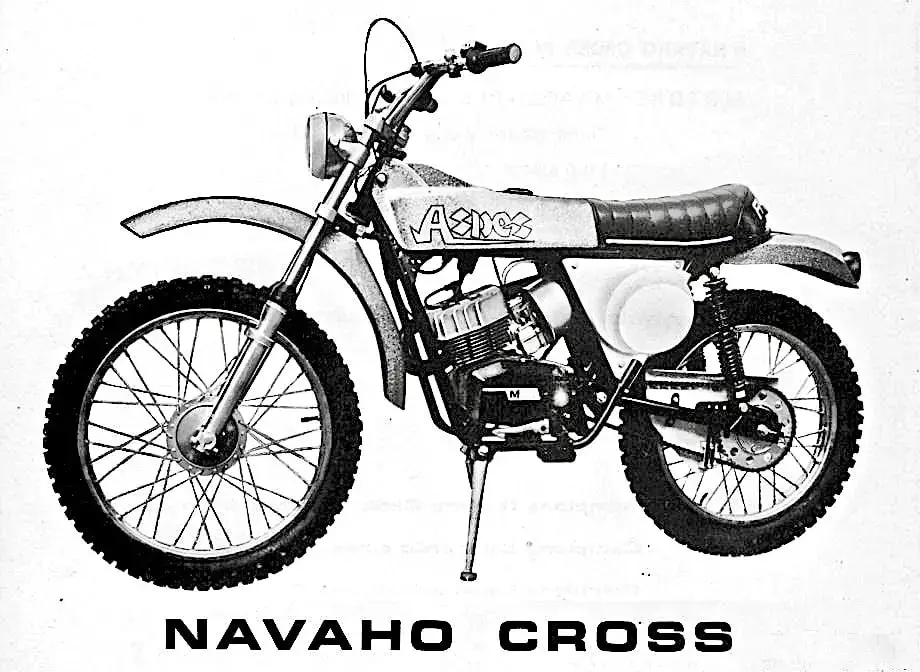 Presentato al Salone di Milano del 1971 e lanciato sul mercato l’anno seguente ad un prezzo di 245.000 lire per il P6 e 235.00 per il P4 (molto più del Caballero di Fantic, che all’epoca costava 198.000 lire), il Navaho rappresenta il punto più alto della produzione Aspes nel settore del fuoristrada leggero. Nato per rispondere alla crescente domanda dei giovanissimi di moto da fuoristrada, il Navaho si distingueva per un design curato e componenti tecnici di qualità, assai più sofisticati rispetto alla media dei ciclomotori dell’epoca. Con motori Minarelli P4 a 4 marce e P6 a 6 marce, e sospensioni teleidrauliche progettate internamente, il Navaho si proponeva come un modello robusto e affidabile, ideale per chi cercava una moto leggera ma capace di affrontare anche percorsi impegnativi. Il prezzo, decisamente superiore alla media, rifletteva la qualità dei materiali e la cura costruttiva: un investimento pensato per appassionati esigenti. Nonostante questo, il Navaho trovò un buon riscontro tra i giovani piloti amatoriali, guadagnandosi un ruolo di rilievo nelle competizioni monomarca. La scheda tecnica era di tutto rispetto.