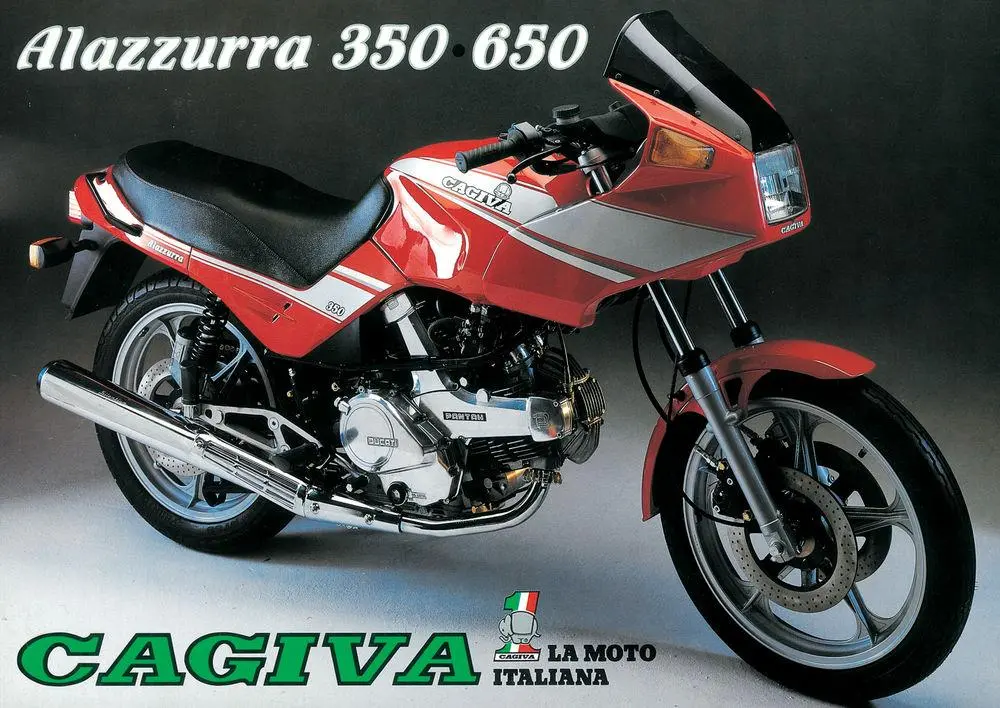 Tornando a quel 1983, i primi frutti della nuova alleanza non tardano ad arrivare. Al Salone di Milano di novembre, accanto all’imponente Elefant 750 da enduro, fa la sua comparsa una sport-tourer inedita: la Cagiva Alazzurra, proposta nelle cilindrate di 350 cm³ (per i diciottenni) e 650 cm³. Il nome deriva da un vecchio modello Aermacchi, ma l’ambizione è tutta nuova. A Schiranna si lavora senza sosta per dimostrare che il vento è cambiato. Non si fanno miracoli, certo, ma il risultato è più che incoraggiante.