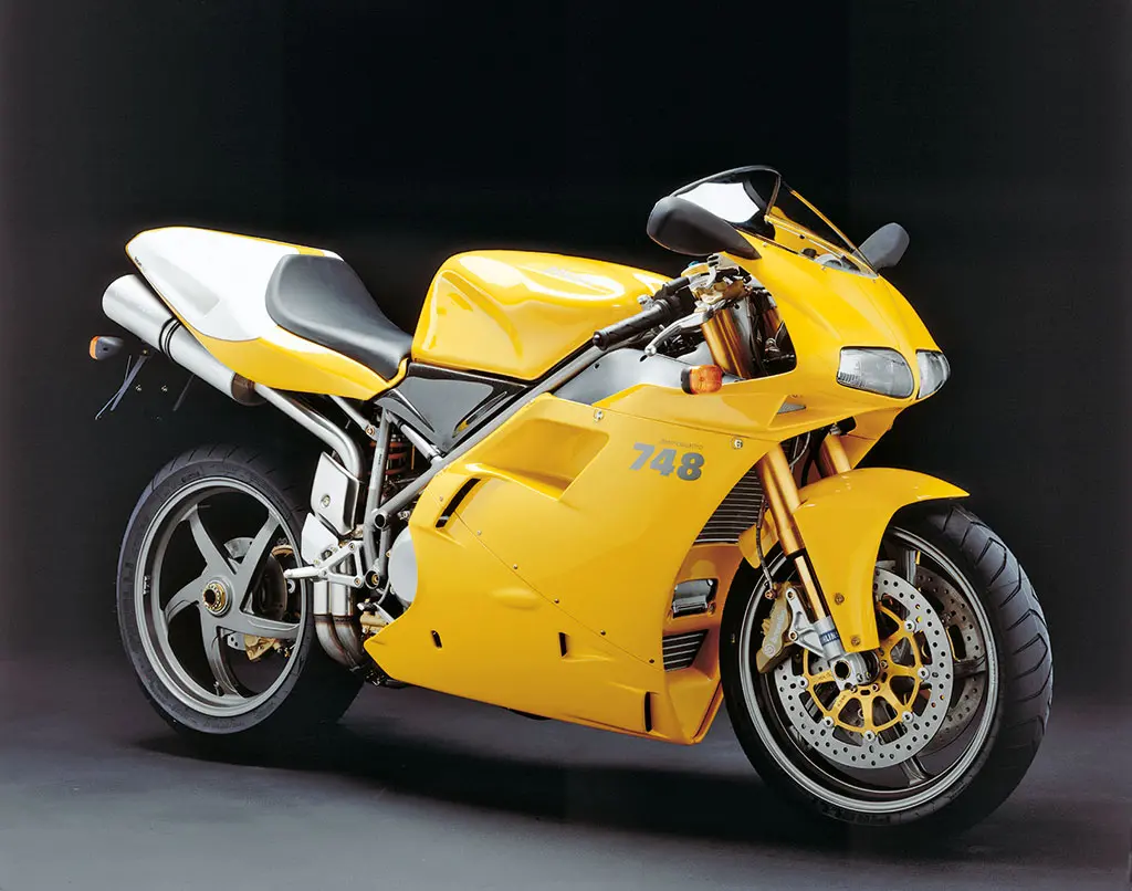 Sa la 916 sfoggiava un biclindrico a L da circa 114 CV a 9 000 rpm caratterizzato da una buona erogazione ai medi regimi e tiro a partire dai 5.000 giri, la 748, che pur vantava lo stesso schema desmoquattro con alesaggio e corsa ridotti a 88 × 61,5 mm, si fermava nella versione standard a 98 CV. Il tutto abbinato ad una ciclistica (quasi) inalterata. Ma vediamo i dettagli.