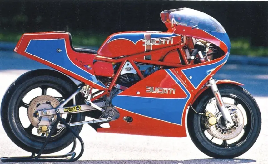 Il salto di qualità arriva nel 1981, quando la Federazione Motociclistica Internazionale limita l’uso delle Yamaha TZ 350 nel Mondiale Formula 2 TT, aprendo la strada ai motori derivati dalla produzione di serie. Ducati coglie l’occasione: affida la preparazione delle moto a Steve Wynne, già noto nel mondo delle corse, e la guida al britannico Tony Rutter. Veterano di lungo corso, Rutter è il tassello giusto per un progetto con poche risorse ma idee molto chiare.