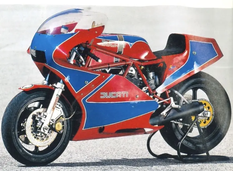 Intanto, anche sul piano sportivo, la TT1 chiude la sua parabola nel modo migliore: nel 1986 Marco Lucchinelli vince due tappe dell’AMA a Daytona e Laguna Seca, riservate alle bicilindriche. Sempre nel 1986 arriva il secondo posto alla 8 Ore di Jerez (Mondiale Endurance), in coppia con Juan Garriga. Il sigillo arriva però alla 200 Miglia di Imola – disputata eccezionalmente a Misano – dove Lucchinelli sbaraglia la concorrenza della Honda RVF 750 di Joey Dunlop e regala a Ducati una vittoria che ha il sapore del simbolo. A settembre dello stesso anno si corre il Bol d’Or al Paul Ricard. Ducati si presenta con un prototipo, il 748i, affidato a Lucchinelli, Ferrari e Garriga. La moto, ritiratasi all’alba mentre era in settima posizione, è una 750 F1 evoluta con testa a quattro valvole per cilindro e raffreddamento a liquido: anticipa in tutto e per tutto la futura 851 SBK e segna l’inizio di una nuova, ambiziosa stagione a Borgo Panigale. Ma quella è un’altra storia…