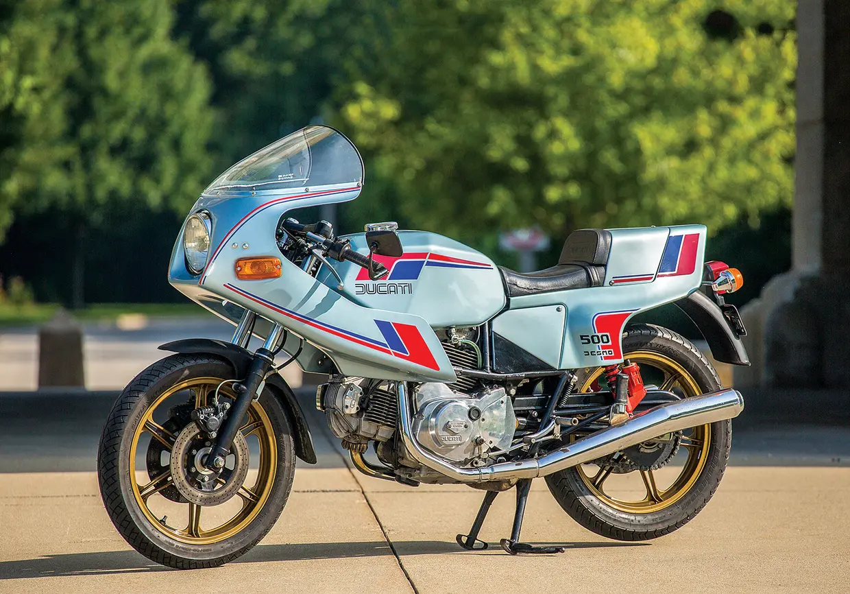 Questa storia comincia in realtà nel 1978 (i primi prototipi erano già apparsi nel 1977), quando Ducati muove i primi passi con la 500 SL Pantah, modello chiave per l’evoluzione tecnica del Marchio: bicilindrico a L, distribuzione Desmo monoalbero con cinghie dentate in gomma, circa 50 CV alla ruota e una velocità massima prossima ai 200 km/h. Una base promettente, che presto viene elaborata per affrontare il Campionato Italiano Junior TT2: cilindrata portata a 582,78 cm³, camme più spinte, carburatori maggiorati e ciclistica rivista con forcelle Marzocchi in magnesio e ammortizzatori a gas.