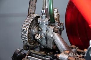 Il movimento veniva trasferito dall’albero motore al rullo per mezzo di un ingranaggio a denti elicoidali che demoltiplicava il rapporto di trasmissione; inizialmente l’ingranaggio condotto venne prodotto in ottone e nei modelli successivi in fibra. All’interno del rullo c’era la bobina ad alta tensione che tramite un filo si collegava al gruppo puntine-condensatore sul lato destro dell’albero motore. Veniva avviato pedalando con la bicicletta, facilitati da un decompressore nella testata; la levetta che lo azionava e quella di comando dell’acceleratore venivano montate sul braccio destro del manubrio con un fissaggio a braccialetto. Per fermarsi senza spegnere il motore bisognava tirare una grossa leva che lo faceva basculare allontanando il rullo dal copertone; per spegnere il motore bisognava azionare il decompressore.