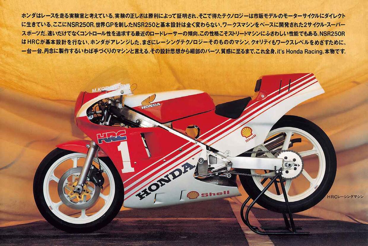 La scritta “Honda Racing” incisa sui carter non era un vezzo estetico. Negli anni d’oro del boom delle racer replica, lo sviluppo delle moto stradali in Giappone era legato a doppio filo alle competizioni su pista. A trainare il mercato erano le 250 due tempi, protagoniste delle production race derivate da modelli di serie. In quel contesto, soprattutto nelle gare endurance a classi miste, le quattro tempi continuavano a godere di un vantaggio netto grazie alla potenza assoluta. A ribaltare improvvisamente gli equilibri fu, nel novembre 1985, la Yamaha TZR250. Honda, che proprio in quegli anni aveva avviato la vendita delle sue moto da competizione, scelse di rispondere con una strada nuova: sviluppare in parallelo la versione da gara e quella stradale. Il risultato arrivò nell’ottobre 1986 con la NSR250R, sigla MC16, proposta come replica omologata per l’uso su strada.