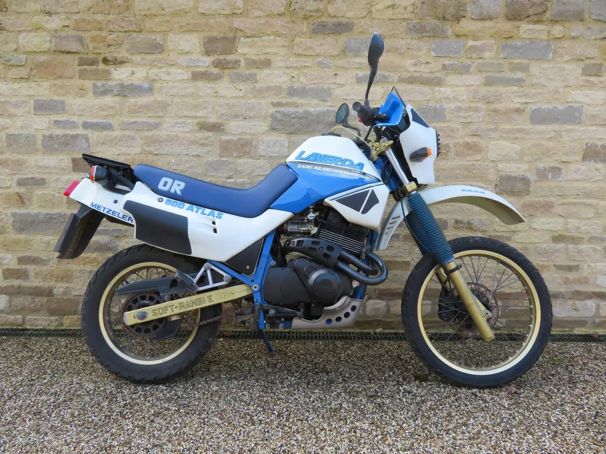 La genesi della Atlas affonda le radici addirittura nella metà degli anni Settanta, quando Laverda fu coinvolta da BMW nello sviluppo dei primi prototipi GS. Tra il 1975 e il 1978 i tecnici di Breganze collaborarono con Monaco per preparare dieci moto destinate alla Parigi-Dakar.