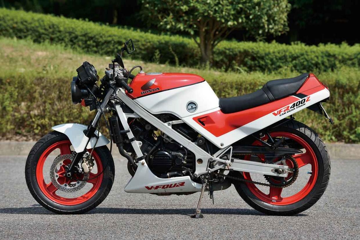 Nuda, compatta e con il motore V4 da corsa della RVF: la VFR400Z è la sportiva che non ti aspetti. Mai vista in Europa, è difficile da trovare anche in Giappone