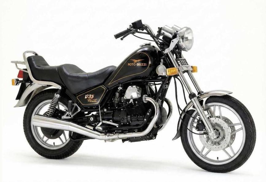 Non per nulla, dopo la V35 II, la prima evoluzione tecnica lanciata nel 1979, la gamma si allargò già nei primi anni ’80 con interpretazioni che cercavano di rispondere ai gusti del pubblico e alle domande di mercato. Nata sul finire del decennio precedente, la V35 Imola proponeva ad esempio un’ impostazione più sportiva, con i semimanubri ed una posizione di guida raccolta. Nel corso degli anni successivi questa stessa “filosofia” venne raffinata con la Imola II, forte di qualche cavallo in più e finiture dedicate. Di lì a breve vennero anche introdotte la V35 SP, una sorta di allestimento intermedio con caratteristiche specifiche che la distinguevano per equipaggiamento e dettagli estetici, e la V35 TT, proposta con una vocazione più versatile, capace di affrontare terreni misti con maggiore agilità pur restando una stradale. In parallelo, negli anni della V35C e subito dopo, emerse una generazione di varianti che ampliavano l’offerta in direzioni completamente differenti. Nel 1986 fece così il suo ingresso la V35 Florida (foto qui sotto) cruiser più confortevole e turistica, con posizione di guida rilassata e finiture orientate al piacere di guida su lunghe distanze.