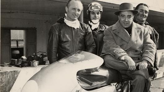 Secondo Magni, una delle grandi ragioni del successo della MV Agusta sul palcoscenico del Motomondiale era legata alla figura di Domenico Agusta. Nato nel 1907 in una famiglia aristocratica dalla lunga tradizione aeronautica, Domenico non era semplicemente il proprietario dell’azienda: dopo la morte del padre Giovanni nel 1927, ne aveva assunto la guida insieme alla madre, portando avanti attività aeronautiche di grande rilievo prima e, a partire dal dopoguerra, trasformando la “Agusta” in un’icona delle due ruote. Nel 1945, in seguito al divieto imposto all’Italia di produrre aerei dopo la guerra, il Conte decise di diversificare la produzione fondando la Meccanica Verghera, il marchio cioè che avrebbe preso il nome MV Agusta. Una scelta fatta non solo per mantenere attiva l’azienda, ma anche come risultato di una visione competitiva aggressiva che avrebbe segnato per tre decenni la storia delle corse. Il suo coinvolgimento non fu infatti meramente finanziario o formale: secondo diverse testimonianze, il Conte era un imprenditore profondamente appassionato di meccanica e di gare e spesso lavorava fianco a fianco con i tecnici e gli ingegneri nel reparto corse. Magni stesso ricordava che Domenico era il “propellente” della squadra. La determinazione, l’orgoglio e la tensione costante che imponeva non lasciavano spazio a comodità o accontentamenti. Per lui vincere non era solo un risultato sportivo, ma un punto d’onore: perdere non era contemplato, e la pressione su piloti e tecnici era continua e rigorosa. Fin dai primi anni Cinquanta, dopo aver radicalmente riorientato l’azienda verso le competizioni, il Conte chiedeva che le moto da corsa arrivassero a prestazioni che per l’epoca sembravano futuristiche: in una fase iniziale l’obiettivo era spingere la quattro cilindri ad avvicinarsi ai cento cavalli, un traguardo di qualità e potenza che la Casa riuscirà a sfiorare solo molti anni dopo con i modelli più evoluti. Ad ogni modo, la spinta imprenditoriale di Domenico non si limitò alle sole gare, dato che negli anni successivi all’avvio delle attività motociclistiche mantenne anche rapporti con l’industria aeronautica, contribuendo ad ampliare la gamma di prodotti dell’azienda fino alla produzione di elicotteri sotto licenza, e ad acquisizioni strategiche come quella della OSCA – Officine Specializzate Costruzione Automobili. Era, insomma, un uomo dalla visione chiara e ambiziosa, un imprenditore che portava la stessa logica di innovazione e rigore delle competizioni motoristiche nella gestione industriale. Per chi lavorava accanto a lui, come Magni, la figura del Conte rappresentava non solo un capo esigente ma anche la forza trainante che aveva trasformato la MV Agusta in una leggenda delle corse.