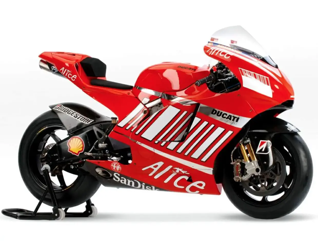 L’era pre-Audi ha toccato il suo apice nel 2007, l'anno in cui Borgo Panigale osò sfidare i giganti giapponesi sul loro terreno d'elezione: la MotoGP. Con l’introduzione dei motori 800cc, Ducati schierò la Desmosedici GP7, un prototipo capace di distinguersi dalla concorrenza per la sua grande esuberanza che, per il quale gomme e cislistica non erano sufficienti, senza una gran dose di "manico". Mentre Honda e Yamaha cercavano un equilibrio tecnico, Ducati scelse la strada della potenza fine a sé stessa. Dunque ad aggiungere quel prezioso ingrediente che era il talento, pensò l'australiano Casey Stoner, il quale riuscì a interpretare a meglio la moto, sfruttando perfettamente la partnership con Bridgestone e compensando "di polso" una gestione elettronica ancora pioneristica. Con 10 vittorie stagionali, Stoner portò a Borgo Panigale il primo storico Titolo Mondiale piloti della classe regina, segnando la vittoria dell’orgoglio ingegneristico italiano contro lo strapotere tecnologico e finanziario dei colossi nipponici.