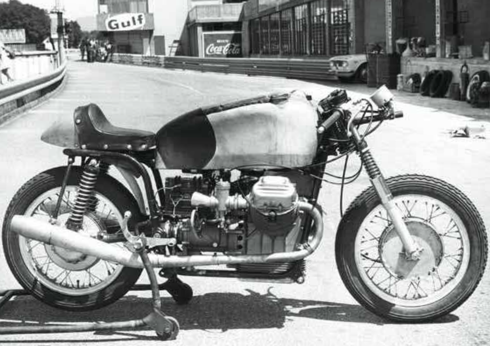 Per l’impresa vengono approntate due Moto Guzzi V7 profondamente riviste. Le sospensioni sono modificate, il serbatoio cresce fino a 29 litri e compare una carenatura in vetroresina studiata per l’alta velocità. Anche i motori sono due: uno da 739,3 cm3 con alesaggio e corsa di 82x70 mm per la classe 750 e uno da 757,5 cm3 (83x70 mm) per la classe 1.000. Entrambi adottano una compressione elevata a 9,6:1, un diverso asse a camme, carburatori Dell’Orto SSI da 38 mm a vaschetta separata e uno scarico libero 2 in 2. La potenza raggiunge i 68 CV a 6.500 giri, mentre il cambio a quattro marce rimane di serie, abbinato però a una coppia conica finale dal rapporto modificato. Il tutto per un peso a vuoto che si ferma a soli 158 kg.