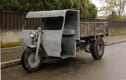 Le ragioni sono evidenti: artigiani, piccoli commercianti, trasportatori locali hanno bisogno di un veicolo compatto, economico, maneggevole, ma più rapido e meno faticoso del triciclo a pedali. Le prime soluzioni sono di compromesso. Compaiono sidecar a pianale o a cassone chiuso, talvolta intercambiabili con la scocca passeggeri. Sono mezzi ancora diffusi fino agli anni Cinquanta, ma limitati per capacità di carico e funzionalità. Serve qualcosa di diverso: un veicolo progettato fin dall’origine per il lavoro, pur sfruttando quanto più possibile la meccanica della moto.
