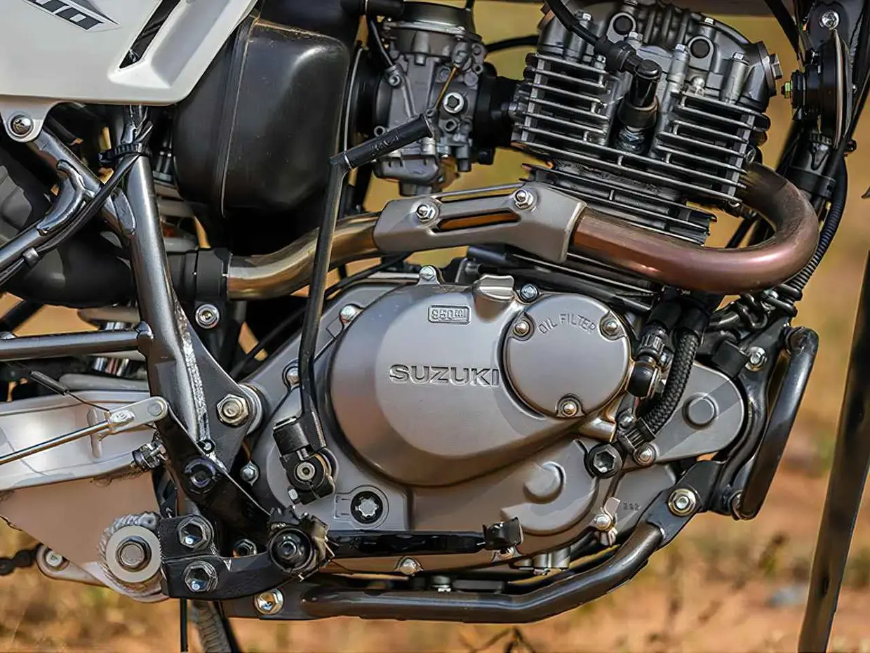 Il monocilindrico da circa 19 CV aveva tutta la potenza necessaria per muoversi agilmente su terreni difficili o fangosi. I para-fanghi generosi e il piccolo tubo proteggi-motore completavano un pacchetto perfetto per terreni accidentati e, come da tradizione per le moto “agricole”, impegnate cioè come muli in pesanti lavori di trasporto su e giù per le sconnesse piste fangose, anche la DR200SE montava un portapacchi anteriore intorno al faro ed un grande portapacchi posteriore utile per caricare materiali o attrezzi. A differenza di molte “sorelle”, aveva però il cavalletto laterale, sul lato sinistro, come una moto normale.