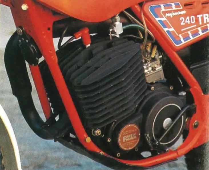 I lavori sulla Trial 240 Professional iniziarono a fine anni Settanta, quando in Fantic si decise di intraprendere la sfida di realizzare un motore completamente “fatto in casa”. Il contesto era chiaro: pur avendo ottenuto ottimi risultati con i motori Minarelli, la Casa di Barzago voleva un prodotto più “autonomo”, in grado di affermarsi come punto di riferimento tecnico nel mondo del trial e della strada. A guidare lo sviluppo fu l’ingegnere F. Mattoni, che progettò un monocilindrico a due tempi, dalle dimensioni compatte ma robusto, pensato per adattarsi a diverse cilindrate tra 125 e 250 cm³. Particolare attenzione fu data all’affidabilità e alla praticità: il motore doveva garantire prestazioni brillanti sin dai bassi regimi, con un’accensione elettronica e una leva di avviamento innovativa, azionabile in avanti.