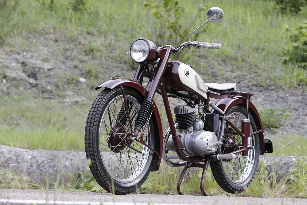 Il primo modello prodotto fu la YA-1, presentata proprio nel 1955. Tecnicamente ispirata alla tedesca DKW RT 125, come molte concorrenti giapponesi, la Yamaha si distingueva però per un livello di finitura superiore: verniciature curate, metalli lavorati con precisione, componentistica solida. Un’attenzione al dettaglio evidente anche in soluzioni come il tachimetro/contachilometri con fondoscala a 100 km/h, la forcella anteriore telescopica — davvero efficace per l’epoca — e la grande sella in gomma, dotata di molle per garantire comfort anche sulle strade più sconnesse.