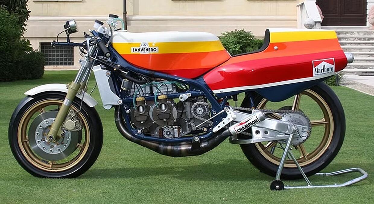 Era quattro cilindri in quadrato anche la Cagiva 500 da Gran Premio 3C2 del 1982, arrivata a una potenza di 125 CV a 11.500 giri/minuto, che corse fino al 1984. Architettura analoga per la Sanvenero 500 schierata da un industriale pesarese nel 1981 e 1982, anno in cui il pilota svizzero Michel Frutschi la portò alla vittoria nel Gran Premio di Francia, disertato però da tutti i big per le disastrose condizioni dell’asfalto di Nogaro.