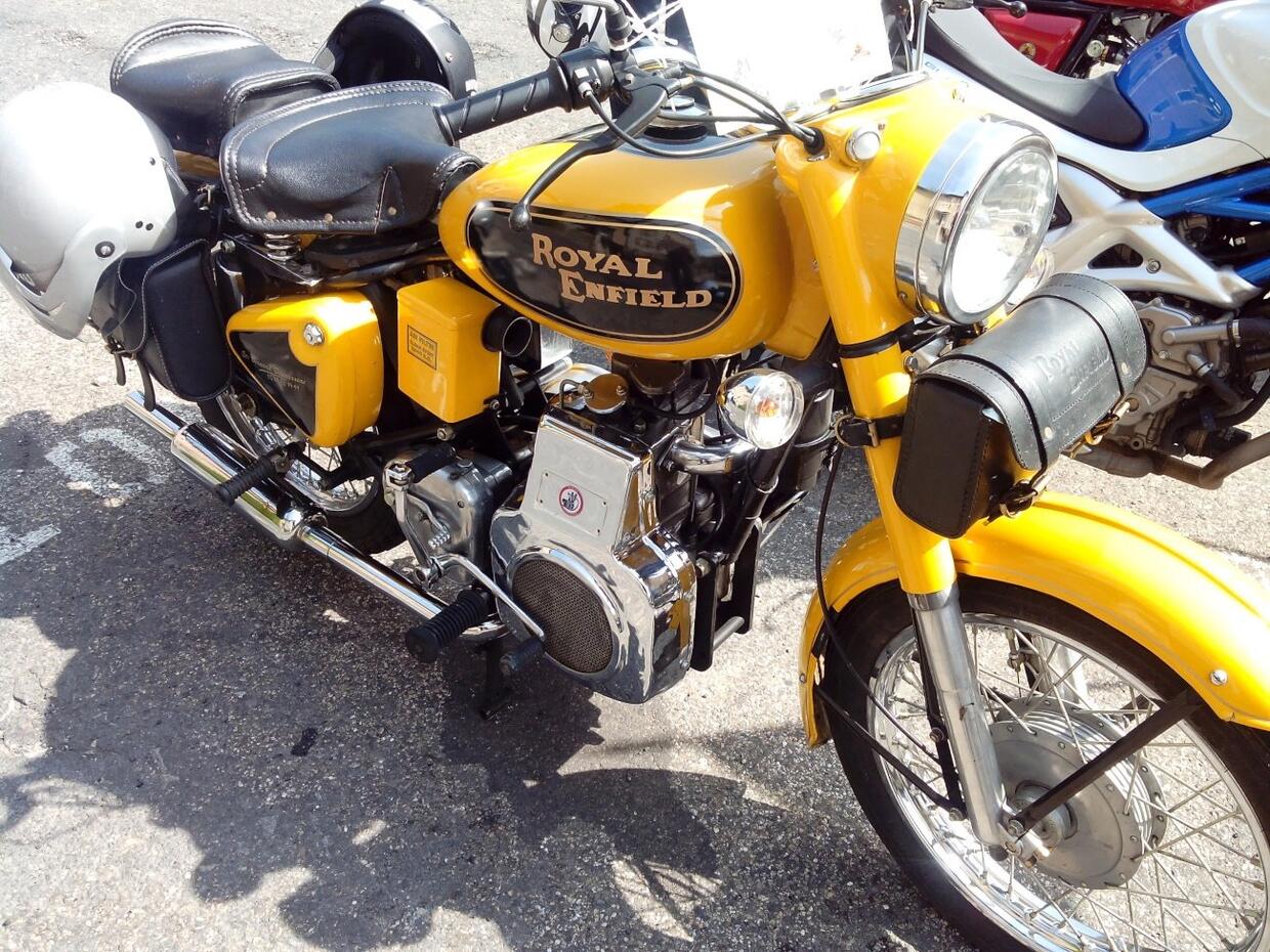 Su questa Royal Enfield Taurus il classico motore monocilindrico è stato sostituito da un Lombardini, abbinato a un cambio a 4 marce. Questo blocco di 325 cm3 sviluppa 6,5 CV e consente una velocità massima dell'ordine di 80 km/h. I freni a tamburo sono dunque più che sufficienti.