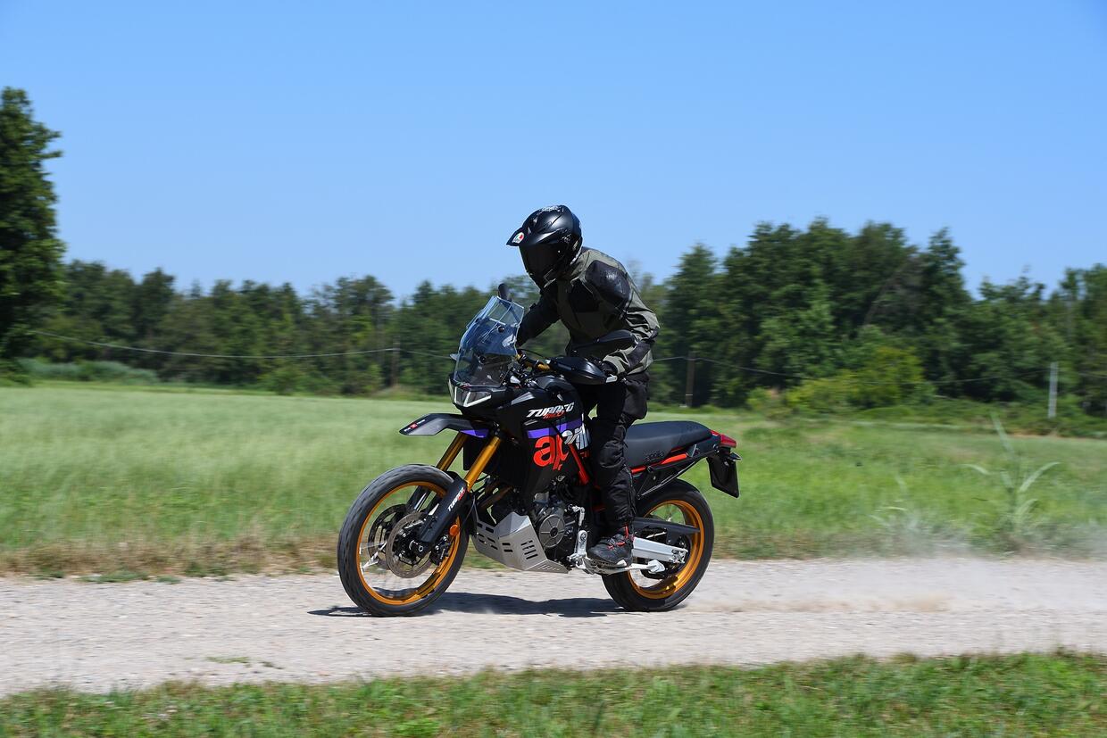 Per dimensioni e peso percepito, la Kove è la più snella e leggera, seguita dalla Yamaha, molto ben bilanciata, mentre l’Aprilia sorprende per la sensazione di leggerezza in movimento, nonostante sia la più pesante fra le tre. È anche la più precisa e rigorosa tra le curve su asfalto, con un avantreno stabile e sospensioni capaci di sostenere anche una guida spedita. Il motore di estrazione sportiva spinge forte ai medi e agli alti, privilegiando il carattere nella parte medio-alta del contagiri rispetto alla coppia ai bassi, ma vanta una risposta del gas immediata e un eccellente cambio elettronico. La frenata è potente e ben modulabile, adatta anche a ritmi sostenuti.