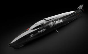 Questo “missile” da oltre 1000 CV e oltre 640 km/h di velocità massima è alimentato da due motori ereditati dalla maxicruiser Triumph Rocket III ed è stato studiato appositamente per dare l'assalto al record di velocità su lago salato. Per la cronaca, il pilota che ha avuto l'onore (e il coraggio) di guidare questo mostro e portarsi a casa il record è Jason Di Salvo.
