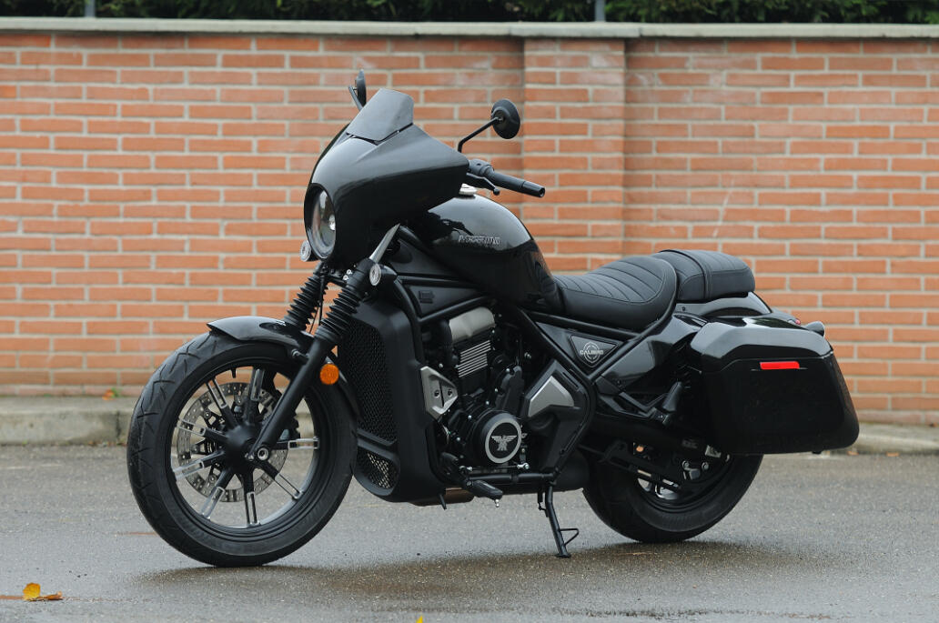 Questa elegante cruiser si distingue per l’aspetto sofisticato, pur mantenendo una base ciclistica simile a quella delle concorrenti. La CFMOTO 450 CL-C monta un bicilindrico in linea da 450 cc e accreditato di una potenza massima dichiarata di 40 CV. Il telaio in acciaio è abbinato a una forcella a steli rovesciati di 37 mm e a un monoammortizzatore, entrambi privi di regolazioni. L’impianto frenante include un disco anteriore di 320 mm con pinza radiale a quattro pistoncini e un disco posteriore di 220 mm. La dotazione di serie comprende ABS e controllo di trazione. Lunga appena 220 cm, offre una seduta a soli 69 cm da terra e un interasse di 148,6 cm. Prezzo: 5.790 euro f.c.